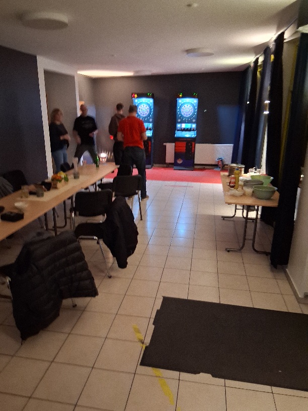 Um 21:15 Uhr war Essenfassen angesagt mit Bockwürstchen und lecker selbstgemachten Salaten. Kay S von den Klönschnackers flog früh raus, alle anderen Ohmsteder Darts mischten noch ordentlich mit.