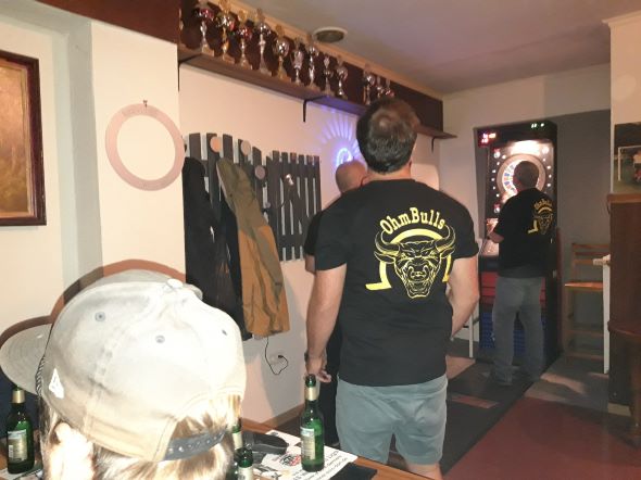 im vorletzten Spiel, auswärts bei den DC Moskitos in Brake, ging es mit 6 Leuten und Support von Freddy rund. In einem dunklen, beengten Nebenraum ohne Fenster sahen wir 2 Dartgeräte, die auf spannende Spiele warteten. So war es auch. Die Fußbodenbretter sorgten für eine knarrende Geräuschkulisse, man hätte meinen können, es regnet die ganze Zeit.