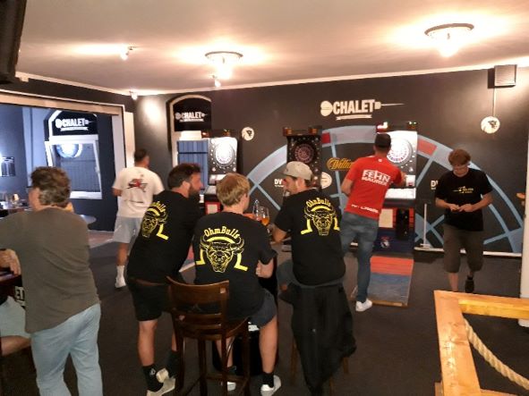 toller Saisonabschluss im Chalet, am 15.08.23, gegen DC Croatia. Mit voller Besatzung von 8 Leuten konnten wir loslegen. Die ersten vier waren Kai, Torben, Christoph und Michael. Der Rest konnte den Tresen nutzen. Michael / Torben verlieren ihr Doppel knapp 2:1, Kai / Christoph setzen sich mit 2:1 durch. In den Einzeln zogen wir zur Pause mit 7:3 an, ganz stark. Das nächste Doppel mit Christoph / Niklas geht 2:0 verloren. Michael / Holger gewinnen 2:1. Am Ende konnten wir uns mit 12:8 durchsetzen und 3 wichtige Punkte sichern, die unseren Klassenerhalt noch einmal manifestierte. Schöne aufgeheiterte Stimmung, auch mit Besuch aus Freiburg. Holger brachte Nick zur Beratung mit.