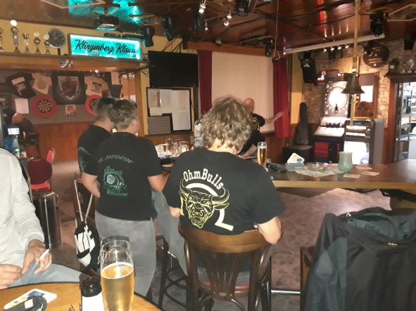 Holger gewinnt 4 von 4, Christoph 1 von 4, Klaus 1 von 4 und Frank 3 von 4. Am Ende wurde das Ergebnis von 12:8 für uns auf den Spielbericht geschrieben, aber tatsächlich haben wir 13:7 gewonnen, da mein Spiel gegen Bettina Rihs mit 2:0 verkehrt herum eingetragen wurde. Tat der Sache aber keinen Abbruch, wir hatten Spaß und mit Schlager und Oldierockmusik im Hintergrund stieg die Stimmung. Wir haben guten Umsatz gemacht und der Oberst mit Kalle sorgten noch für angenehmen Support. Ach so, abgeschlossen haben wir auch! Klasse Start in die neue Saison, nächste Woche haben wir ein Heimspiel.