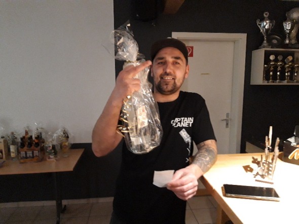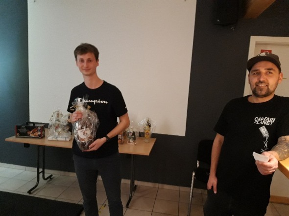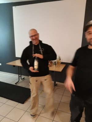 Es entwickelten sich spannende und enge Spiele. Gegen 21 Uhr war Essen fassen angesagt, mit Bratwürstchen, Schnitzel, Salaten usw. Zum Schluss konnte sich Thede im Finale gegen Kalle durchsetzen. Mit Thede gab es einen überzeugenden und verdienten Sieger. Kalle durchlebte nach einer Niederlage gegen Michael über die Trostrunde bis zum Finale. Michael wurde dritter und führte die Preisverleihung mit viel Humor durch. Antje und Hartmut hatten für jeden Teilnehmer einen Preis besorgt.
